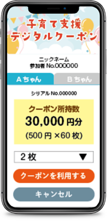 子育て支援サービスや育児グッズの購入に利用できるクーポン