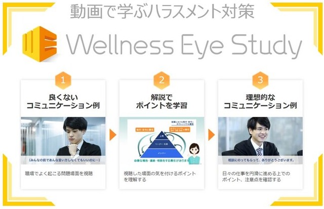 動画教材サービス「Wellness Eye Study」が提供する『職場のハラスメント撲滅月間 対策セット』は、一般職として必要とされる最低限の知識を定期的に再確認することで、職場で起こりやすいハラスメントを防止することを目的とした動画のラインアップとしています。