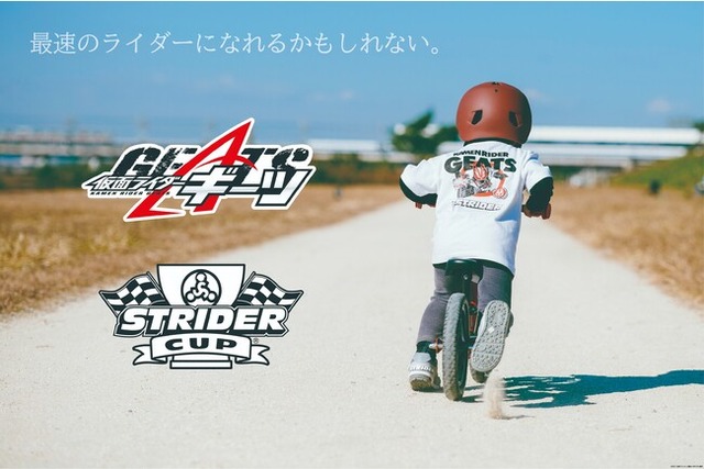 また、本コラボレーションを記念して、同日11月20日(日)に開催される「STRIDER CUP 2022」幕張メッセ 国際展示場1・2ホール会場にて同アイテムの先行販売をいたします。会場では『仮面ライダーギーツ』モデルのストライダーの展示(非売品)も行います。