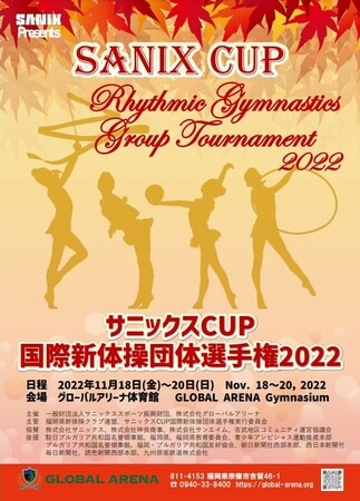 株式会社サニックス(本社:福岡県福岡市、代表取締役社長 宗政 寛)は、明日11月18日から3日間グローバルアリーナにて開催される「サニックスCUP国際新体操団体選手権2022」に協賛いたします。