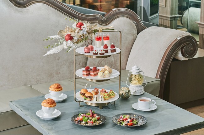 ・スイーツ:パンナコッタ ストロベリーソース/ミニ クグロフ/サンタ帽子 ストロベリータルトレット/ラズベリーオペラ/オーナメント ラズベリームース/ラズベリー入り スノードーム・マカロン/ホワイトチョコレート スコーン