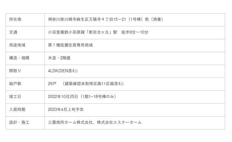 三井不動産レジデンシャル株式会社(本社:東京都中央区、代表取締役社長:嘉村 徹)は、神奈川県麻生区内において建設中の分譲戸建「ファインコート新百合ヶ丘グランレガシー(以下、本物件)」のモデルハウスを2022年11月19日(土)よりグランドオープン※3いたしますのでお知らせいたします。