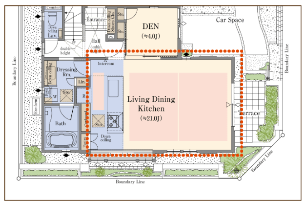本物件は、新百合山手地区の景観に調和し、美しい街並みを継承することを目指した全29区画のビッグプロジェクトです。ゆとりある街区内道路や憩いの空間となるポケットパークを設ける等、スケールメリットを活かした街並みを創り上げ、周囲の景観と調和する多種多様な植栽を配しています。さらに125平方メートル 超の敷地面積を活かした特長のある住戸プランは、約18畳~21畳のリビング・ダイニング・キッチンや天井高約2.7m※10のリビング・ダイニング等、開放的な空間を実現しています。また、在宅ワークスペースとなるDENをはじめ、アイランドキッチンやマルチスペースを採用し、住戸ごとに個性あるプランを追求しています。