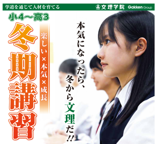 文理学院の冬期講習は全校舎を4つの区分に分け、各地域の学校行事予定に合わせた企画を組んでいます。