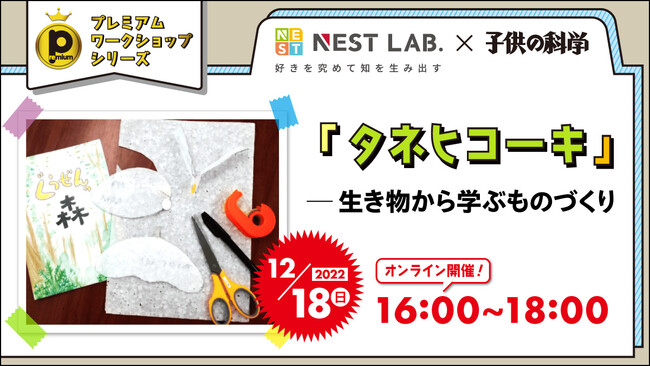 小中学生向けの科学雑誌『子供の科学』では、読者にさまざまな科学体験を提供するオンラインイベントを開催しています。このたび、小中学生の才能発掘研究所「NEST LAB.」とコラボレーションして、身近な科学やものづくり、テクノロジー、サステイナブルサイエンスを学べる月1回のプレミアムワークショップシリーズを開設。