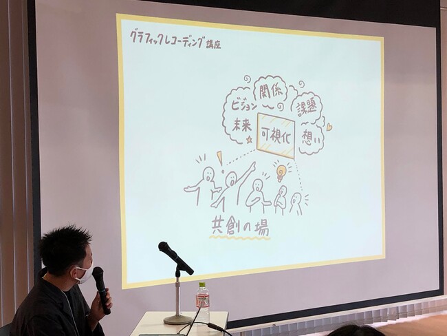 「パッと見てわかる記録にすることで、ビジョンや課題が明確化し、多様な立場の人が対話しながら一緒に新しい価値をつくる場が生まれると僕は思います。内容を思い出しやすく、その場限りにならないのも、グラレコの良さですね」(渡辺さん)