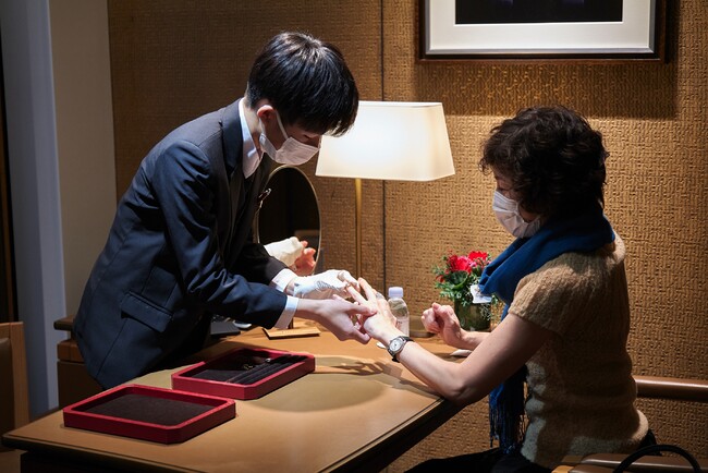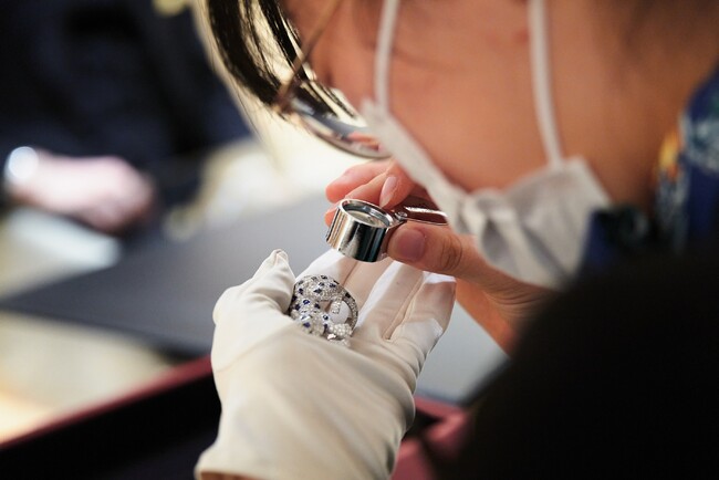 特別なユニフォームに身を包んだこども達は、真剣な面持ちでカルティエの歴史や伝統ついて学ぶとともに、カルティエのクライアント アドバイザーとしての立ち居振る舞い、所作、ラッピングやメゾンの魅力をお客様にお伝えする接客スキルを熱心に習いました。また、カルティエの象徴「パンテール」があしらわれたリングをルーペで観察。卓越した職人たちの熟練技による美しいジュエリーを通して、1847年創業時より変わることなく普遍の美を追求するカルティエのモノづくりにも触れました。