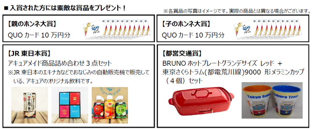 各賞について:親のホンネ大賞(1名)、子のホンネ大賞(1名)、JR東日本賞(1名)、都営交通賞(1名)、東京メトロ賞(1名)、CSP賞(1名)、