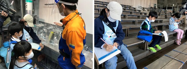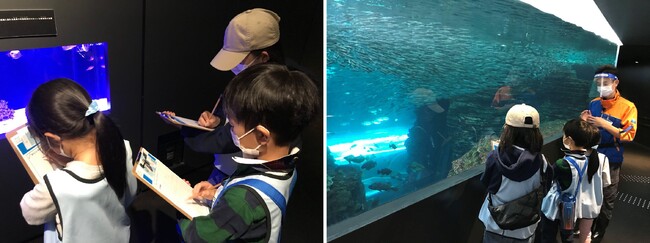 人間と違い、海の生き物は元気が無くても自分で伝えることは出来ないので、生き物の健康状態を把握するために、水槽の汚れ方やえさの食べ残しをチェックすることも大切なポイント。普段とは違う目線の水族館の楽しみ方で、子供たちのまなざしも真剣さを帯びていきます。