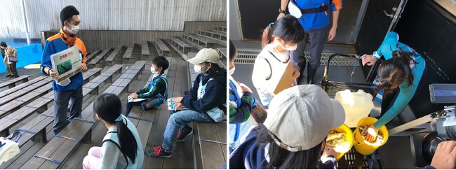 バックヤードでの体験を終えて、改めて今日学んだことをまとめます。海の生き物を元気に育てるための日々のお仕事や工夫、そして生き物を守るための研究活動など、様々な水族館の役割をみんなでフィードバックしていきます。表側からは見えなかった水族館の様々な役割を学び終え、子供たちからは「もう1回水族館を見たい!」という声が。海の魅力や大切さに気づく、貴重な一日になりました。