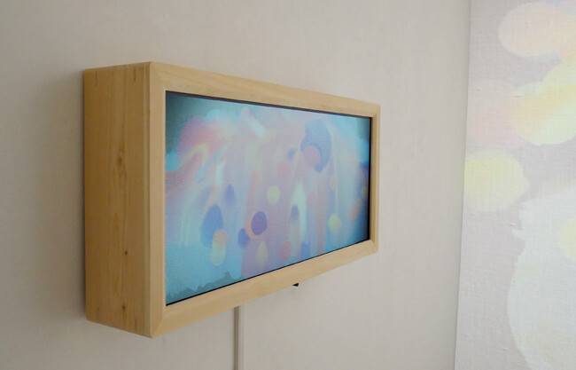 Hironori Sugino氏、Shing02氏との共同制作による作品。 音声に反応して、映像が変化するデジタルアート。音程や音量を識別し、インクの色合いが移り変わる。インクは、コピックインクの色合いを再現。アルコールインクアートのような鮮やかな色彩を表現しています。