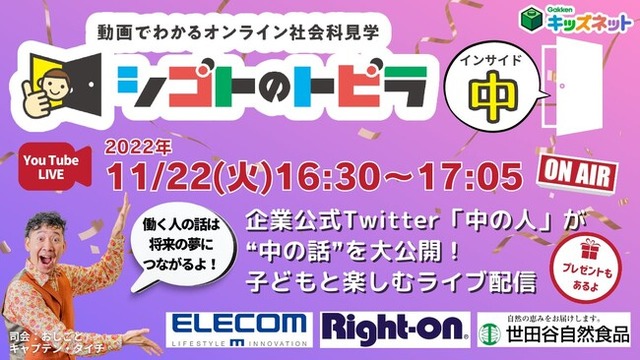 学研グループ・Gakkenの関連会社ワン・パブリッシングが運営する、「学研キッズネット」のオンライン企画。様々な業態・職種で働く人を紹介し、小・中学生の子どもたちに社会科見学のような体験を提供しています。