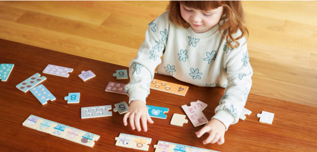 動物や数字が描かれている木製パズル。動物の数と同じ数字のピースを繋げたり、1~10の順番で動物の列車を作ってみたり。遊びながら数を学びましょう。