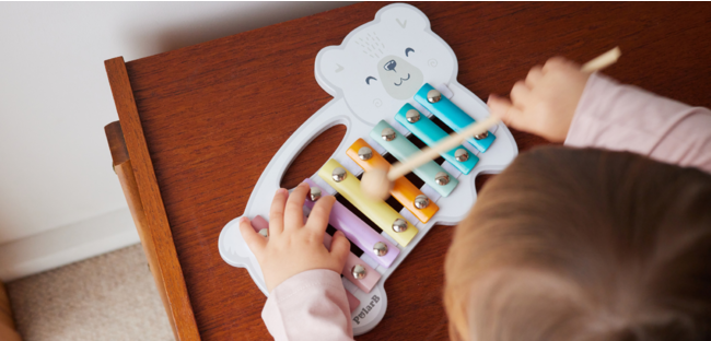 カラフルな鍵盤のシロフォン。優しい音色で楽しく演奏!お子さまの小さな手でも持ちやすいハンドル付きです。