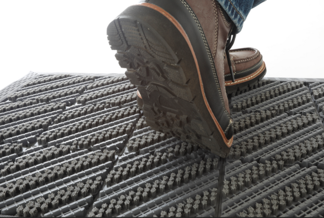 マットの表面にある三列のブラシが、頑固な泥汚れや雪など、靴に付いた細かいゴミまでしっかりかき取り、室内に汚れを持ち込ませません。外作業で靴が汚れやすい方のご自宅や土足で過ごすオフィスや店舗、マンションの出入口等におすすめです。