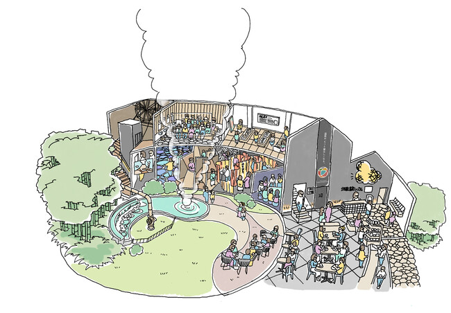 「温泉が、もっと愛おしくなる」を掲げた、温泉を軸とするアカデミック・エンターテインメント施設。視覚的な仕掛けやスタンプラリーを通して、50年もの歳月をかけて温泉が生まれるまでの旅を、来場者自身が段階ごとに体験します。