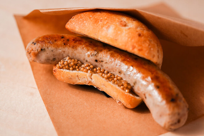 別府市内のシェフ3名とのコラボレーションによる完全無化調無添加の温泉ソーセージを使用した50CAFEオリジナルホットドッグ