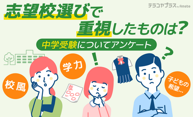 「テラコヤプラス by Ameba」では子どもの中学受験を経験したことのある保護者252人に、第一志望校受験の決め手や併願校で重視したことなど、「中学受験の志望校選び」についてアンケートを実施しました。
