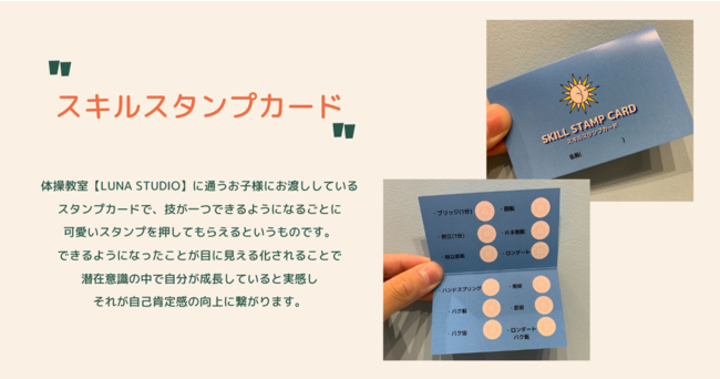 そして、それを目に見える形でお子様に実感させてあげることが重要です。そのためのツールとして、今回のスキルスタンプカードの導入は大きな役割を担います。