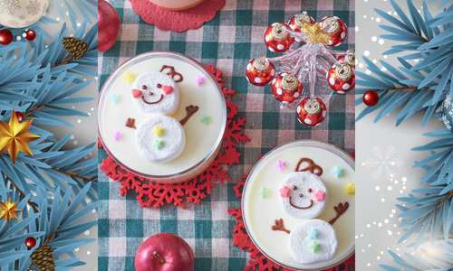 クリスマスにぴったりのかわいい「スノーマンミルクプリン」を作ります。シンプルな材料で手軽に作れ、さらにカルシウムもたっぷり摂れるので、お子さまのおやつの定番メニューにおすすめです。