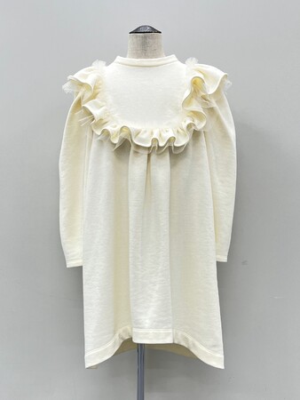 胸元のフリルは、チュールを重ねてギャザーを入れているので、可愛らしくガーリーな印象になり顔周りを華やかにしてくれます。