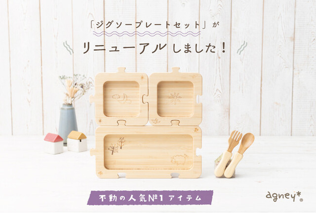 天然素材製品の製造販売を手掛ける仲吉商事株式会社(本社:埼玉県越谷市)は、ベビー・こども向けオリジナル食器の自社ブランド「agney*(アグニー) https://www.agney.jp」にて、より使いやすい食器へとリニューアルした「ジグソープレート」を発表。