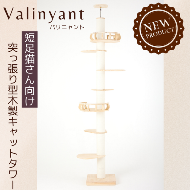 商品名:短足猫さん向け 突っ張り型木製キャットタワー Valinyant(バリニャント)