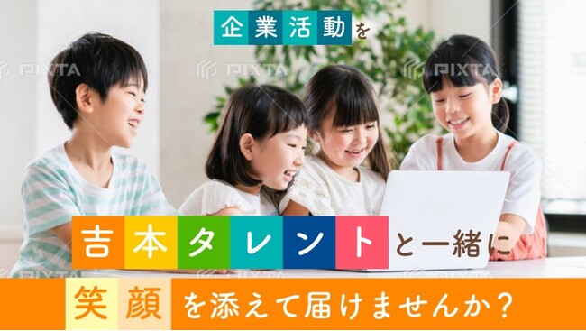 吉本タレントと一緒に「笑顔」を添えて活動を子どもたちに届け、企業の次世代のファンづくりをサポートします。