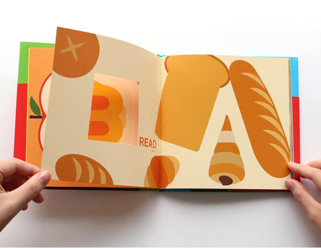 この通り、りんごの絵から「B」の文字があらわれ、「BREAD」(パン)となるのです。