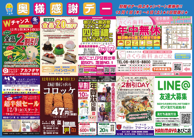 地下鉄御堂筋線あびこ駅出口すぐに立地する、エネルギッシュな大阪の下町商店街「地下鉄あびこ中央商店街(通称:あびんこ商店街)」が、年末に向けお得で楽しいイベントを開催します。