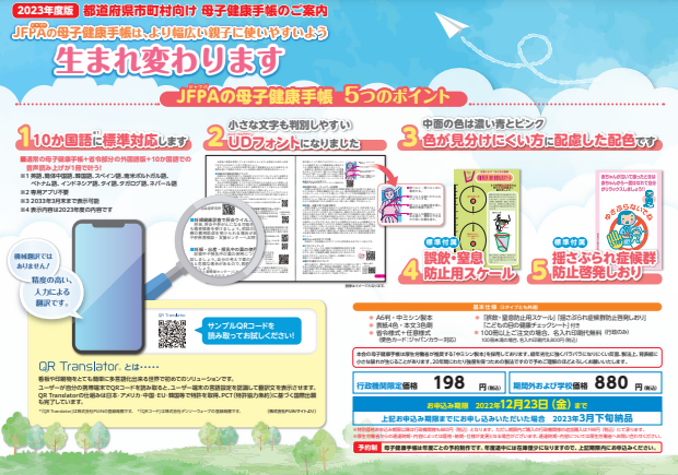 一般社団法人 日本家族計画協会(本部:東京都渋谷区、代表理事理事長:三橋 裕行、以下「JFPA」)は、同協会が各自治体向けに発行している母子健康手帳において、2023年度版から、株式会社PIJIN(本社:東京都千代田区、代表取締役:高岡 謙二、以下「PIJIN」)が開発・運営する多言語表示サービスのQR Translatorを用いて、10言語の対応を行う方針を発表しました。