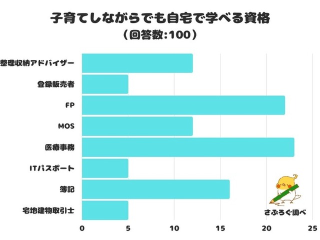 子育てしながらでも自宅で学べる資格をアンケートにて調査したところ、1位は「医療事務」でした。