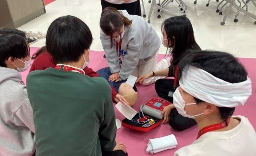 当校では、受講生の多くがドラッグストアでの就職が決定しています。将来、災害やパンデミックが生じた際、地域のドラッグストアは医薬品をはじめとする応急物資の供給を担う重要な拠点になろうかと思います。登録販売者として、いざというときに応急手当ができるスタッフとして活躍できるよう当校では、登録販売者を目指す学生に対して、社会の役に立つ講習会を実施しています。
