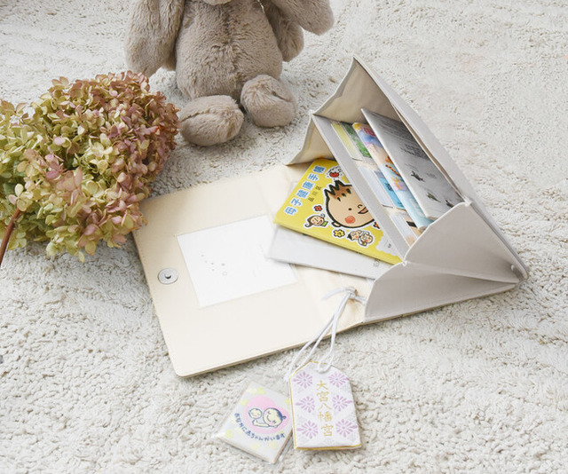 他にもペンホルダーや、安産祈願のお守りを付けられるキーリング、エコー写真や赤ちゃんの写真を入れておけるクリアポケットなど、機能的なディティールが満載。