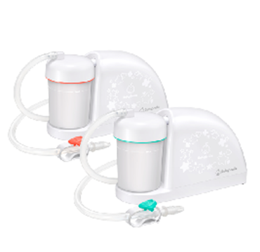 発売以来、お陰様で多くのお母様方や保育者からご愛用され、全国1,000ヶ所以上の病院でもご紹介いただいています。またモデルチェンジを重ねていく中で、医師やお母様の声を取り入れながら機能性や操作性を高め、企業努力を重ねコストダウンも実現。新モデルのS-504は高い吸引力・操作性を維持しながらさらにコンパクトになり、また新発想の蓄光イラストも採用しました。