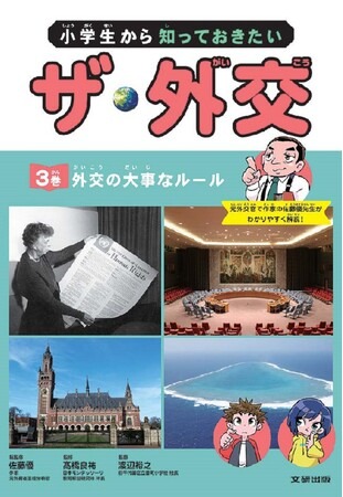 「小学生から知っておきたい ザ・外交」シリーズは,外交の意味や役割,外交を行う組織と人,外交のルール,外交で活躍した人々などを,導入マンガや佐藤優先生のキャラクターを通じて,豊富な資料やデータと写真を掲載して分かりやすく解説しています。この巻では,条約や領土、主権などについて扱っています。領土問題では、ウクライナ紛争など最新の情報について取り上げています。
