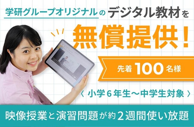 学研グループオリジナルのデジタル教材を約2週間無償提供いたします。