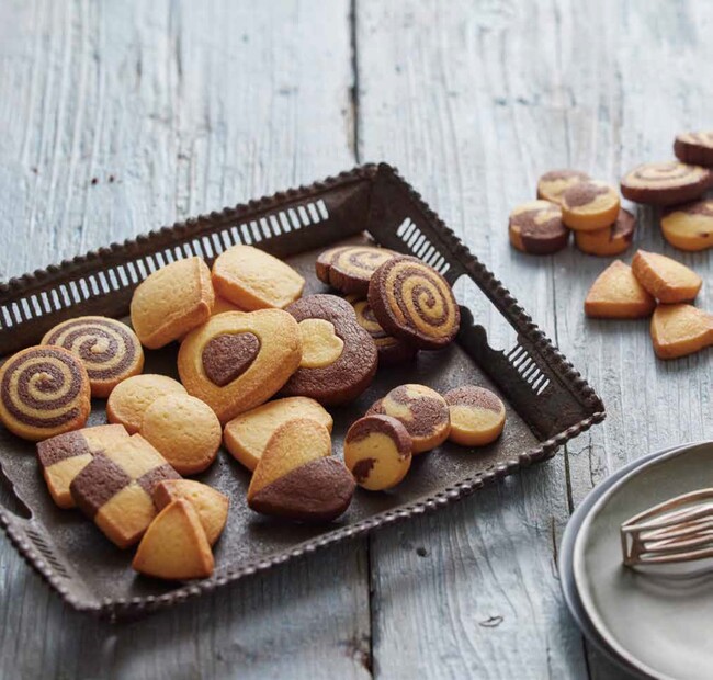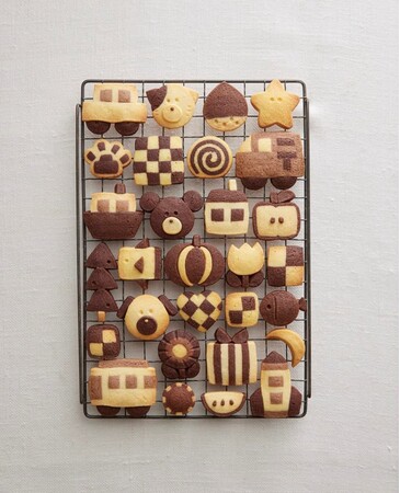カワサキさんは、キレイすぎる白黒クッキーの断面の画像とともに“クッキーを焼く前のかわいさ”をつぶやいたツイートが、18万以上のいいねを獲得するほど人気です。誌面では、カワサキさんのプレーンとココアの基本2色の生地だけで作る「モノトーン」アイスボックスクッキーのレシピを紹介。シンプルなクッキーから愛らしい動物や花、子どもが喜ぶ乗り物やキャラクターまで、数々のレシピを写真プロセスつきでわかりやすく解説。クッキー作り初心者はもちろん、凝ったクッキーに挑戦したい方にもおすすめの一冊です。