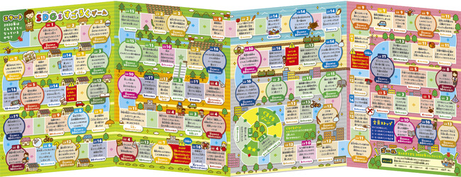 SDGsを自分ごとに捉えるための行動が書かれたマスや、自分の考えを発表するマスを進みながらポイントを集めていくゲームです。考える力や発表する力が身につきます。