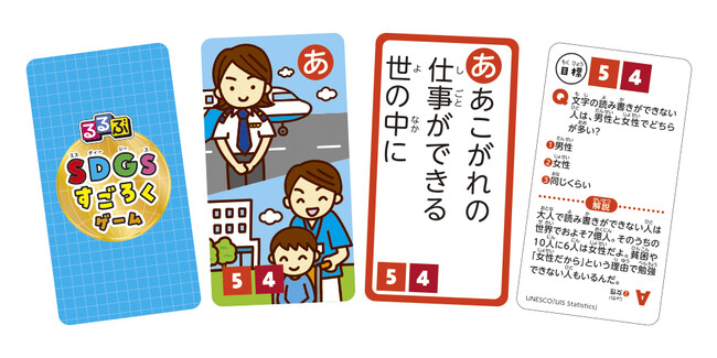 46枚の絵札でかるた遊びができます。「おくじゃなく 牛乳とるなら 手前から」といった、SDGsに関連した五・七・五調で、小さなお子様もSDGsを身近に感じながら遊べます。