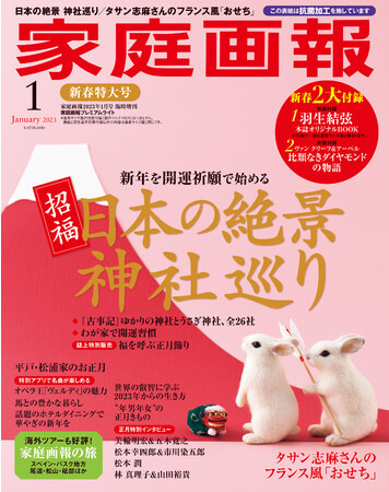 『家庭画報2023年1月号』では、「新年を開運祈願で始める 招福 日本の絶景 神社巡り」と題し、第一部「日本の神様に開運祈願 古事記ゆかりの地へ」、第二部「わが家をパワースポットに! 神様をお迎えする開運習慣」の二部構成で大特集を展開。また2023年の幕開けにふさわしい、時代を象徴する方々に登場いただきました。