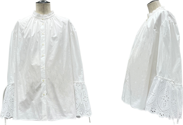 一枚で着映えしつつ、様々な着こなしができるアイテムをつくりたいと考え、エンブロイダリーレースのオールシーズン着られるブラウスとドレスをつくりました。