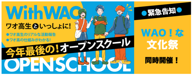 ワオ高 12月のオープンスクールは「WAO!な文化祭」併催!