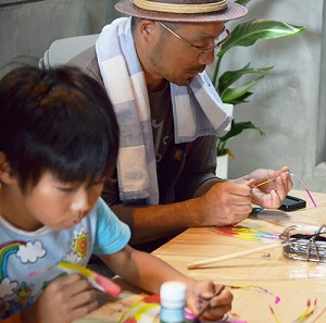 2.えかきはなび・・・筒型の手持ち花火のまわりに自由に絵を描くお子様向けのワークショップです。
