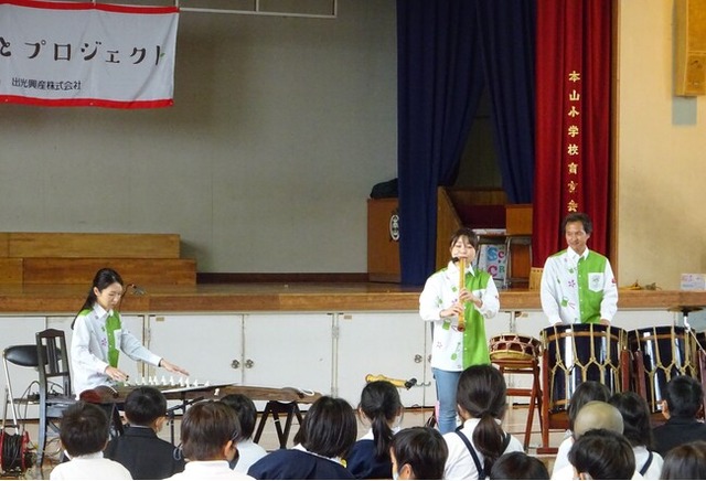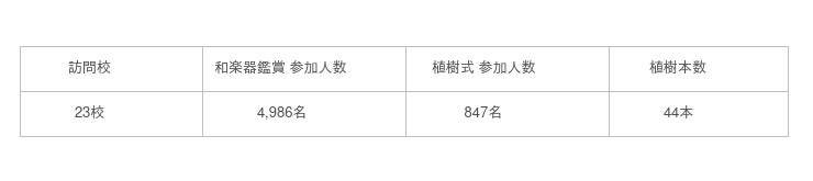 「ふるさとプロジェクト」は、和楽器の演奏鑑賞と演奏体験、植樹式を行うプロジェクトです。次世代を担う若者の挑戦・成長・能力発揮の支援を行うとともに、本物に触れる機会を提供したいという思いで、2018年から全国各地の小学校で開催しています。