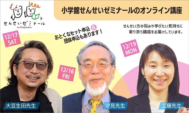 「せんせいゼミナール」は、『教育技術』および『新幼児と保育』を刊行してきた小学館がプロデュースする保育者と教師のための研修講座シリーズです。信頼できる専門家や力のある実践者を講師に迎え、保幼小の先生方の悩みや学びたい気持ちに寄り添う講座をお届けしています。
