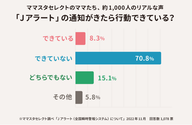 ママたちから寄せられたコメントからは「アラーム音に動揺してあたふたしてしまう」「パニックになって終わり」など動揺している様子や、「どこに避難していいのか分からない」など解決のための選択肢を持っていないことが明らかに。