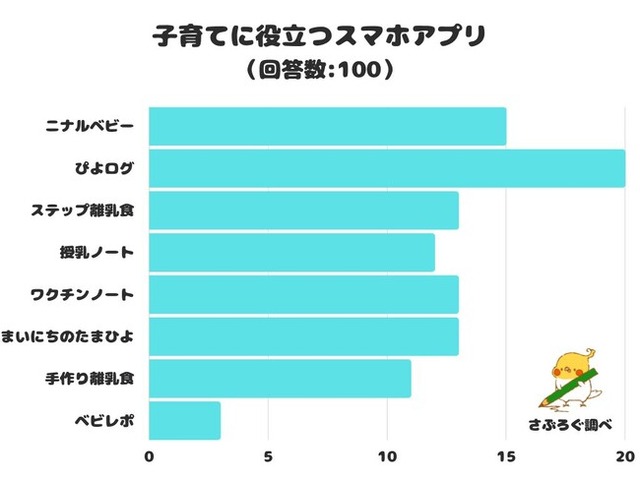 子育てに役立つスマホアプリをアンケートにて調査したところ、1位は「ぴよログ」でした。