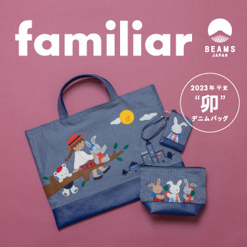 女の子たちの永遠の憧れで、神戸出身の女性たちにとっては想い出と切り離せない懐かしいアイテムのひとつと言われている〈ファミリア〉のバッグ。2021年に干支をテーマにしたデニムバッグをリリースし人気を博した〈ファミリア〉と〈ビームス ジャパン〉の、3度目となるスペシャルなコラボレーションアイテムを2022年12月13日(火)より発売いたします。2023年の干支“卯”をモチーフにしたデニムバッグとポーチ、ミニケースの3型をご用意しました。
