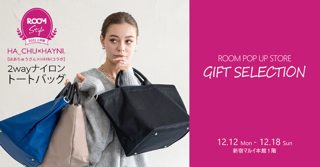 ドラマ⾐装協力も多く手がけるバッグブランドHAYNI.(株式会社HAYNI、本社:大阪市淀川区)は、「新宿マルイ本館」(株式会社丸井、本社:東京都中野区)にて、2022年12月12日 (月)から2022年12月18日(日)に開催される、楽天グループ株式会社(以下「楽天」)が運営するショッピングSNS「ROOM」のショールーミング型ポップアップストア「ROOM GIFT SELECTION POP UP STORE」(以下、「本ポップアップストア」)内のブースで、「ROOM」オフィシャルユーザーはあちゅうさんとコラボした弊社商品「はあちゅうさん×HAYNIコラボ 2way ショルダーバッグ」の展示を行います。